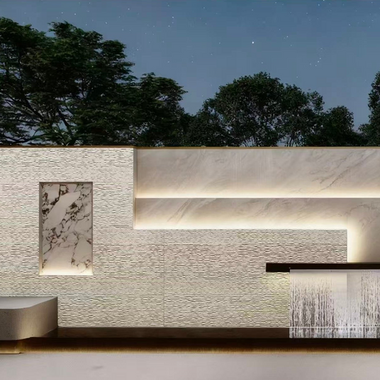 The Line Stone Off White panel balances natural stone character with a contemporary linear profile. Its softly textured surface diffuses light evenly, enhancing spatial dimension while maintaining a clean, cohesive appearance. Ideal for projects that require tactile interest without overpowering the surrounding architecture.